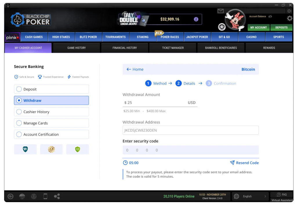 We’re rolling out Email 2-Factor Authentication (2FA) on all cashouts. This added layer of protection helps safeguard your funds and protect your poker account by verifying every withdrawal request with a secure code delivered straight to your email inbox.