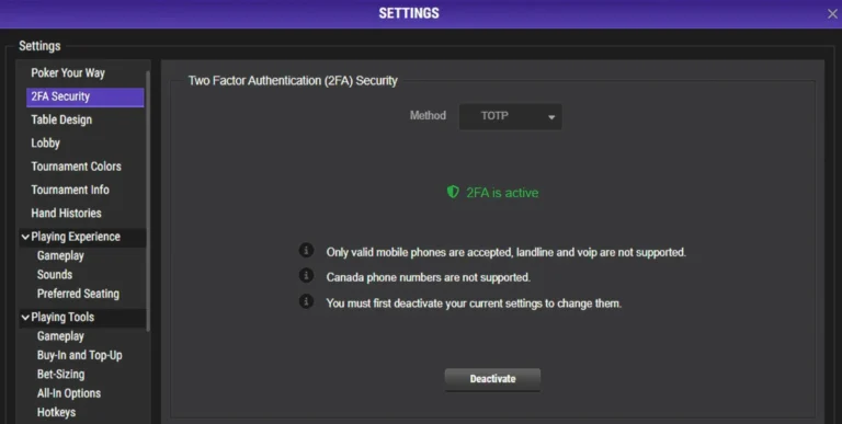 If the email address on your account is old, incorrect, or no longer valid, you can update it directly from the poker client—but only if you have 2FA enabled.